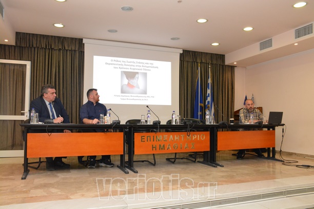 Χαιρετισμό απηύθυνε και ο πρόεδρος του Ιατρικού Συλλόγου Ημαθίας, Πρόδρομος Ισαακίδης, ο οποίος είπε πως μια τέτοια ημερίδα έλειπε τα τελευταία χρόνια και γίνεται σήμερα για ένα θέμα που ίσως είναι το πιο συχνό για όλους μας και για κάθε σπίτι.